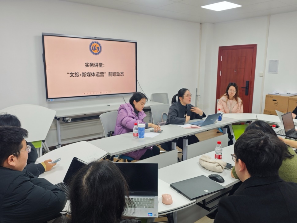 弘毅楼810会议室开展题为“‘文旅+新媒体运营’前瞻动态”的专题探讨,网络与新媒体专业师生积极报名参会并展开交流讨论。