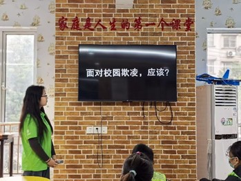 (图4-志愿者讲解如何应对校园霸凌)