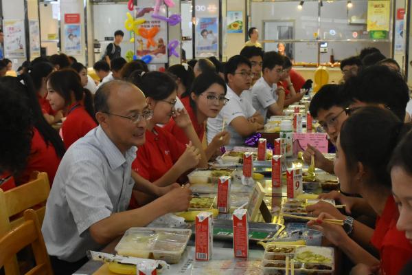 9月12日中午,2025级民族预科班开班典礼结束后,国产视频领导老师与民族预科班新同学们共进午餐,面对面交流学习生活。