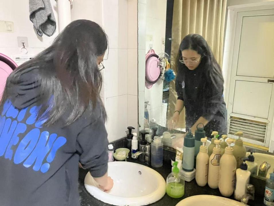 在清洁宿舍前期准备中,各宿舍成员迅速集结,明确分工、各司其职。在慧园305宿舍,同学们带着清扫工具,全身心投入到清洁工作中,重点对宿舍地面、桌面、窗台、阳台及卫生间等区域进行全面清扫。大家不怕脏、不怕累,认真擦拭洗手池周围水渍、清理墙角卫生死角、规整桌面杂物,将散落的个人物品分类摆放,把堆积的垃圾及时清理。整个宿舍中洋溢着积极劳动、团结协作的氛围。经过大家的共同努力,原本略显杂乱的宿舍变得干净整洁、窗明几净,每一个角落都焕发出新的光彩,同学们的学习生活空间环境也得到了改善。