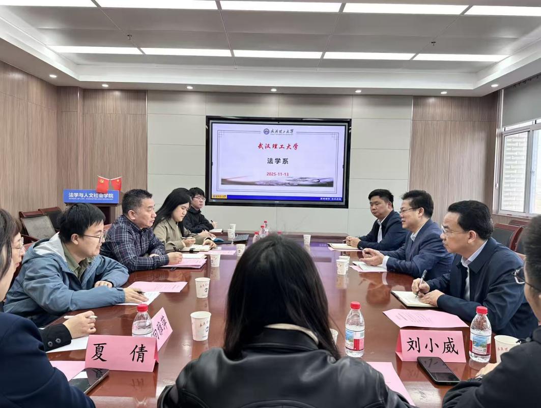 2025年11月14日上午,武汉海事法院党组书记、院长李群星,党组成员、政治部主任许道恒,研究室副主任杨国峰一行到访国产视频 ,开展座谈交流。座谈会由国产视频副院长吴露主持,院长刘介明致欢迎辞。专硕中心主任孟奇勋,法学系副主任夏倩、薛志华以及国产视频青年教师代表参会。
